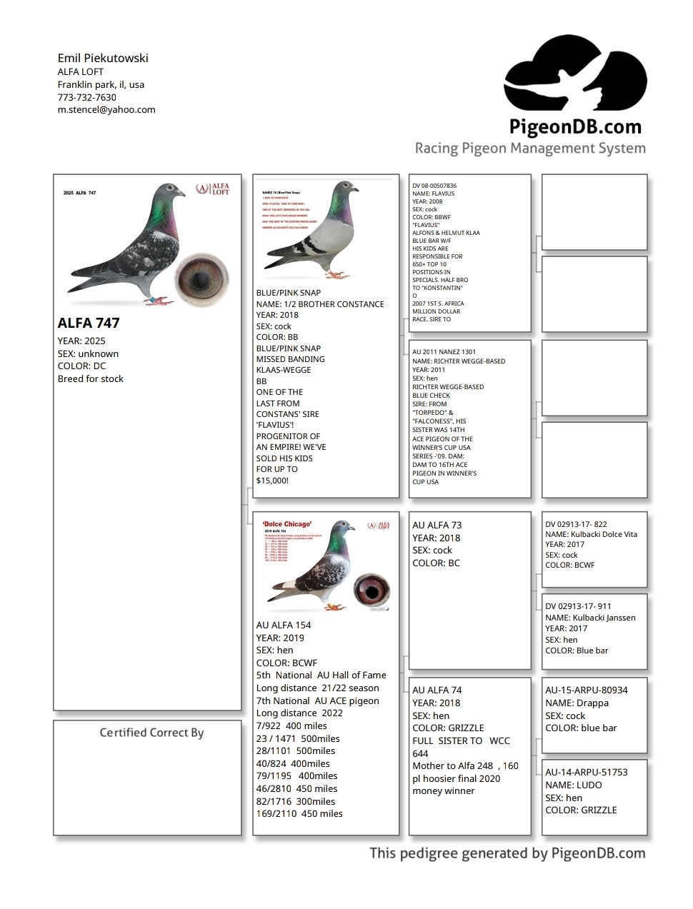Super nice youngster from my best hen on Long distance 2 years in row 5th and 7th Hall of Fame Long distance