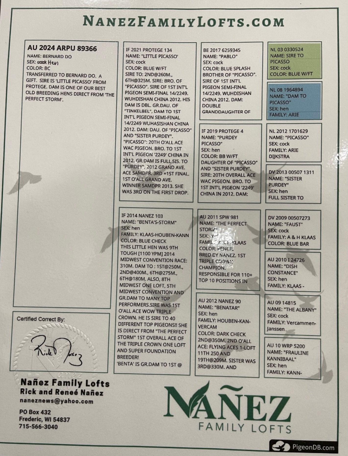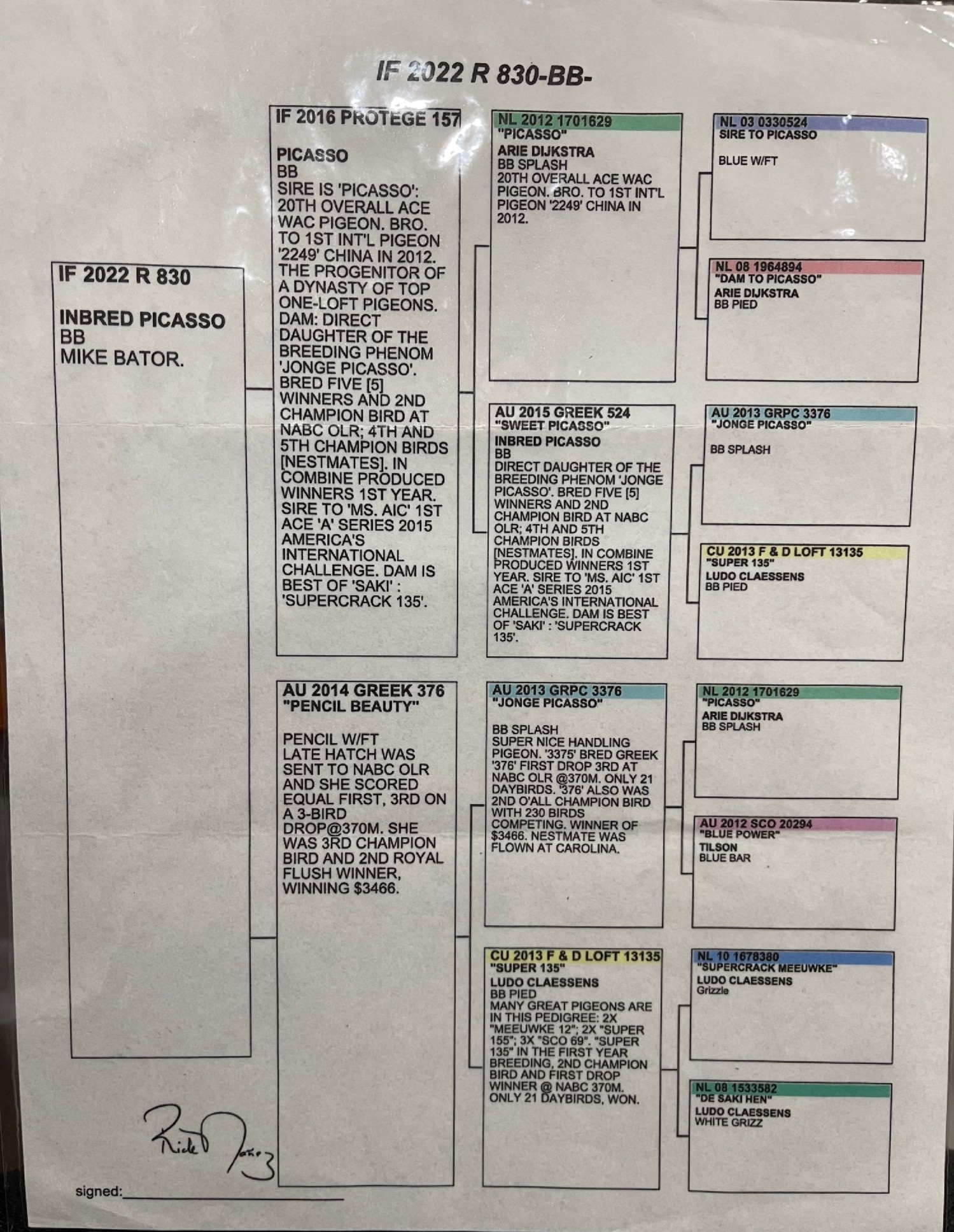 and IF16-157 also is grand sire of 4th ace bird Hoosier 2025 for Nanze Family Loft
