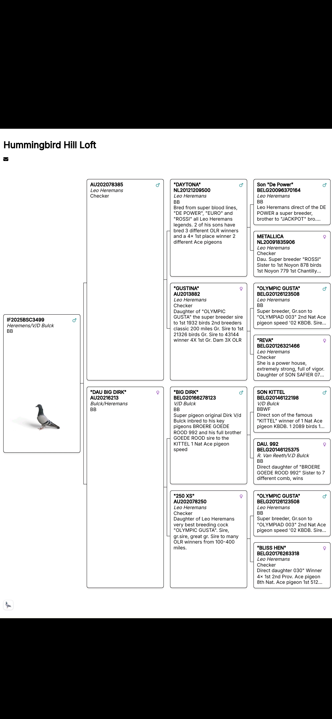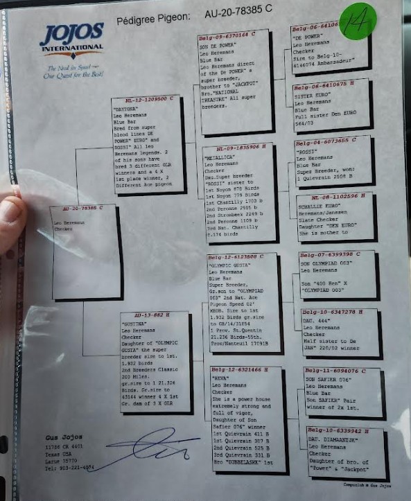 IF-25-BSC-3499 BB - Possibly a Cock but not guaranteed. Late hatch, bred for stock. From 2 of the best of Jojos International Birth. The Sire is from Leo Hereman's line and the Dam is from Dirk Van Den Bulck and Leo Heremans. This bird has the bloodline to become a great breeder.