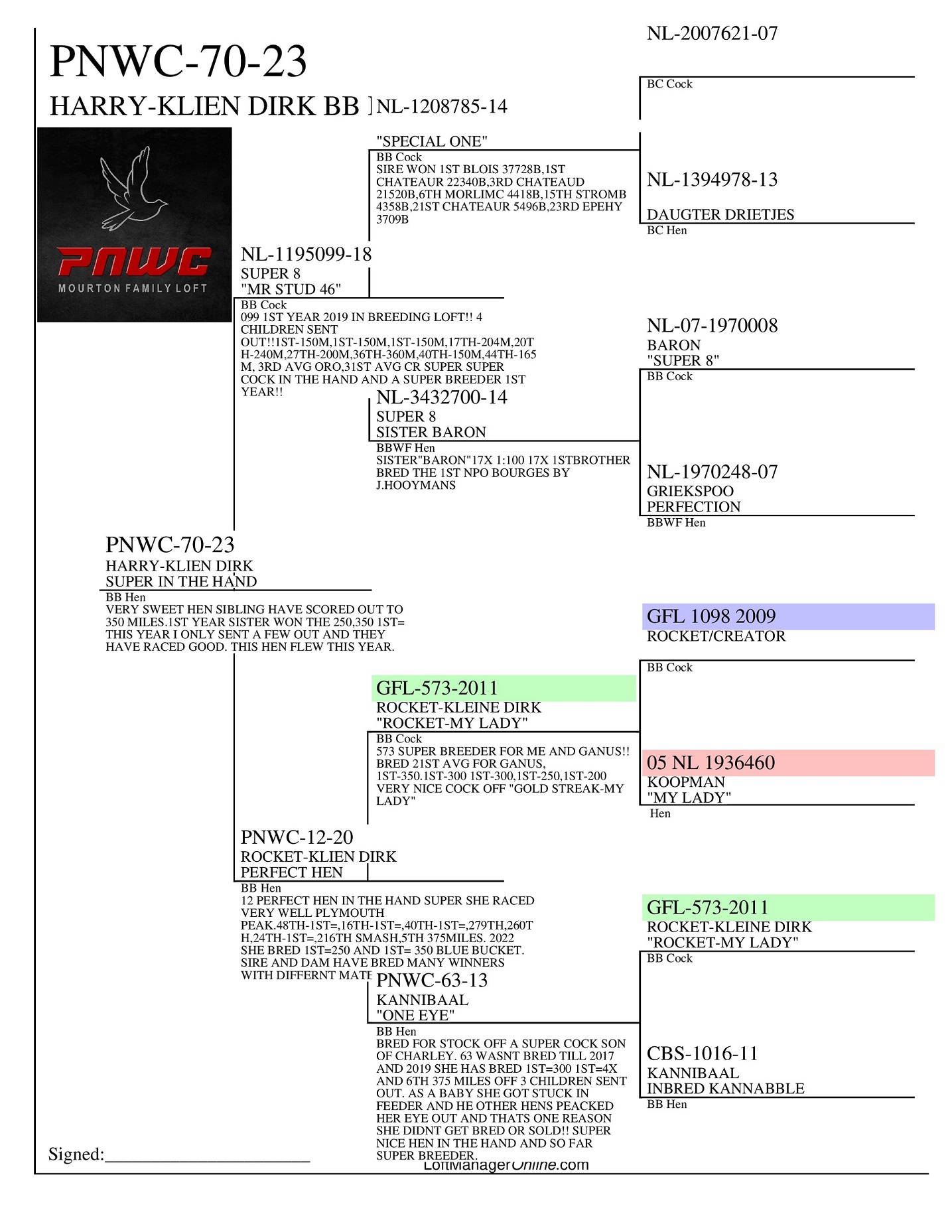 Hen - PNWC-070-23 - Nice handling Hen, Full sister to eq1st on 250 mile and 350mile from Mark Mourton. (Super bloodline, See Pedigree)