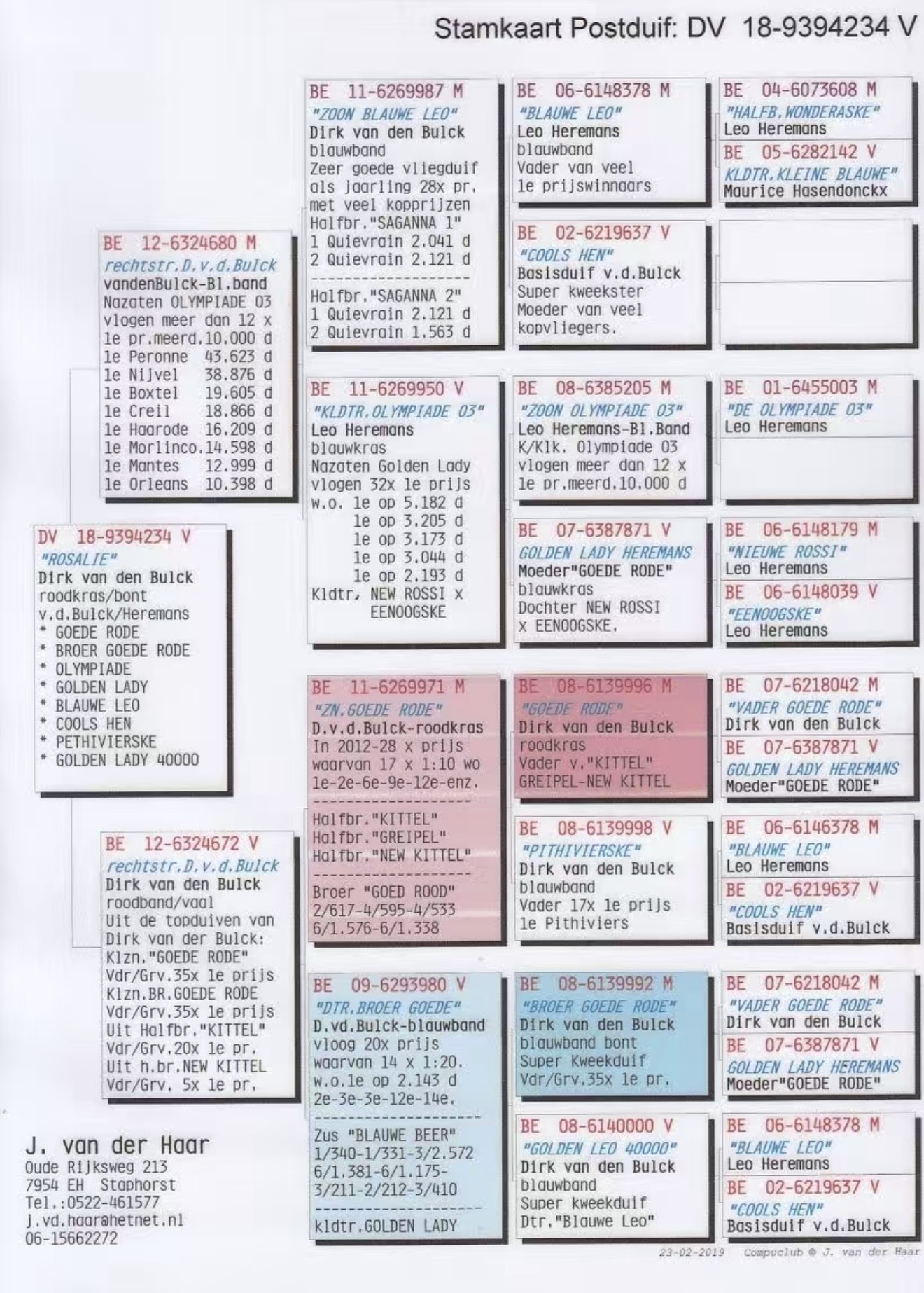 Great hen. Leo Heremans x Dirk Van Den Bulck. Check out the Pedigree.