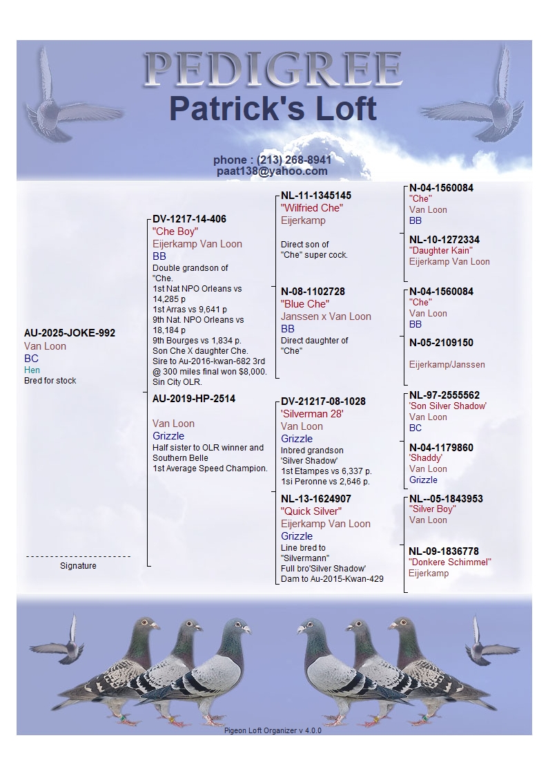 AU-2025-JOKE-992 BC hen, little under medium,nice confirmation,Sire is a double grandson of 'CHE' dam is down from grandson of Silver Shadow quality you can trust,check ped for more info.