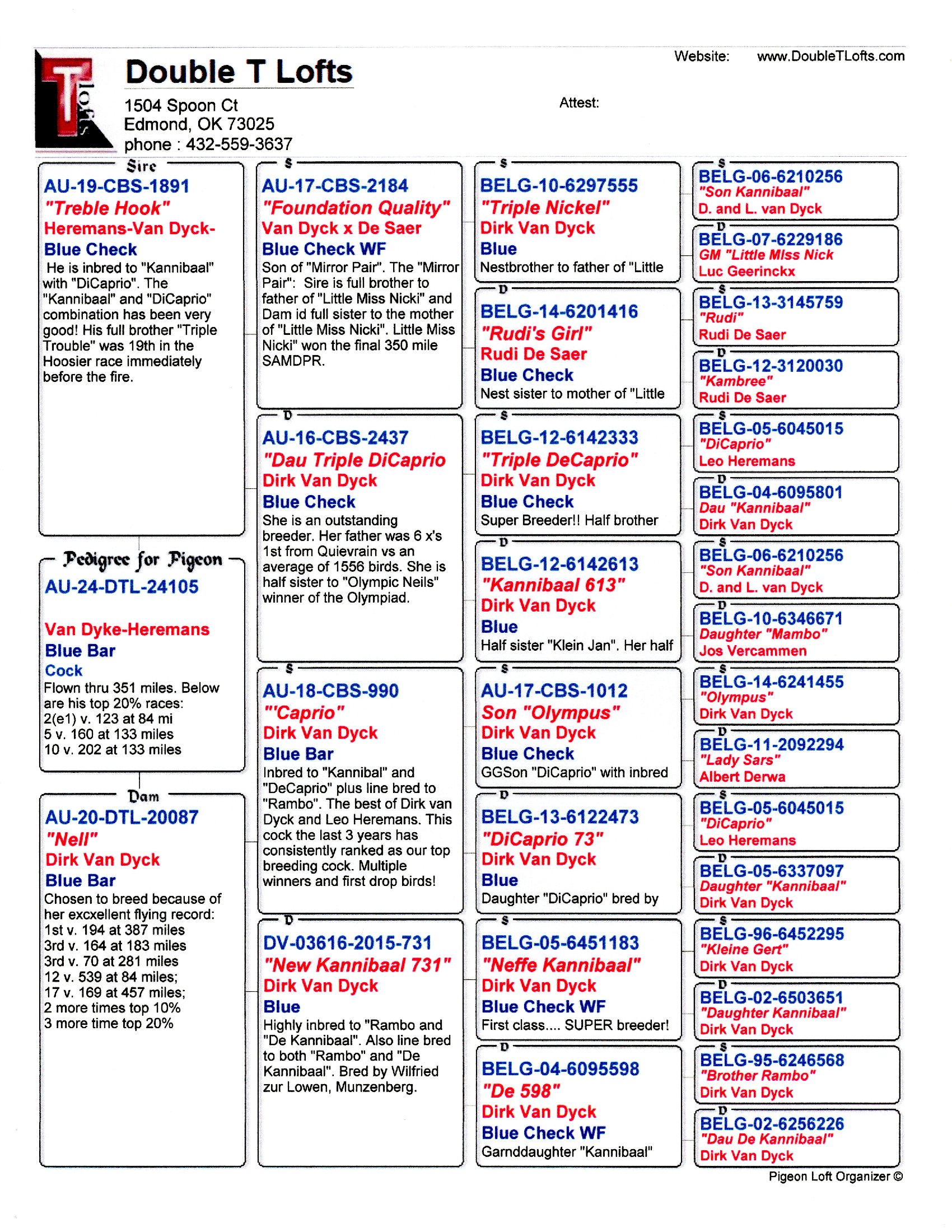 Dam: AU-20-DTL-20087 "Nell" - She is also inbred "Kannibaal" with "DiCaprio". She was an excellent flyer: