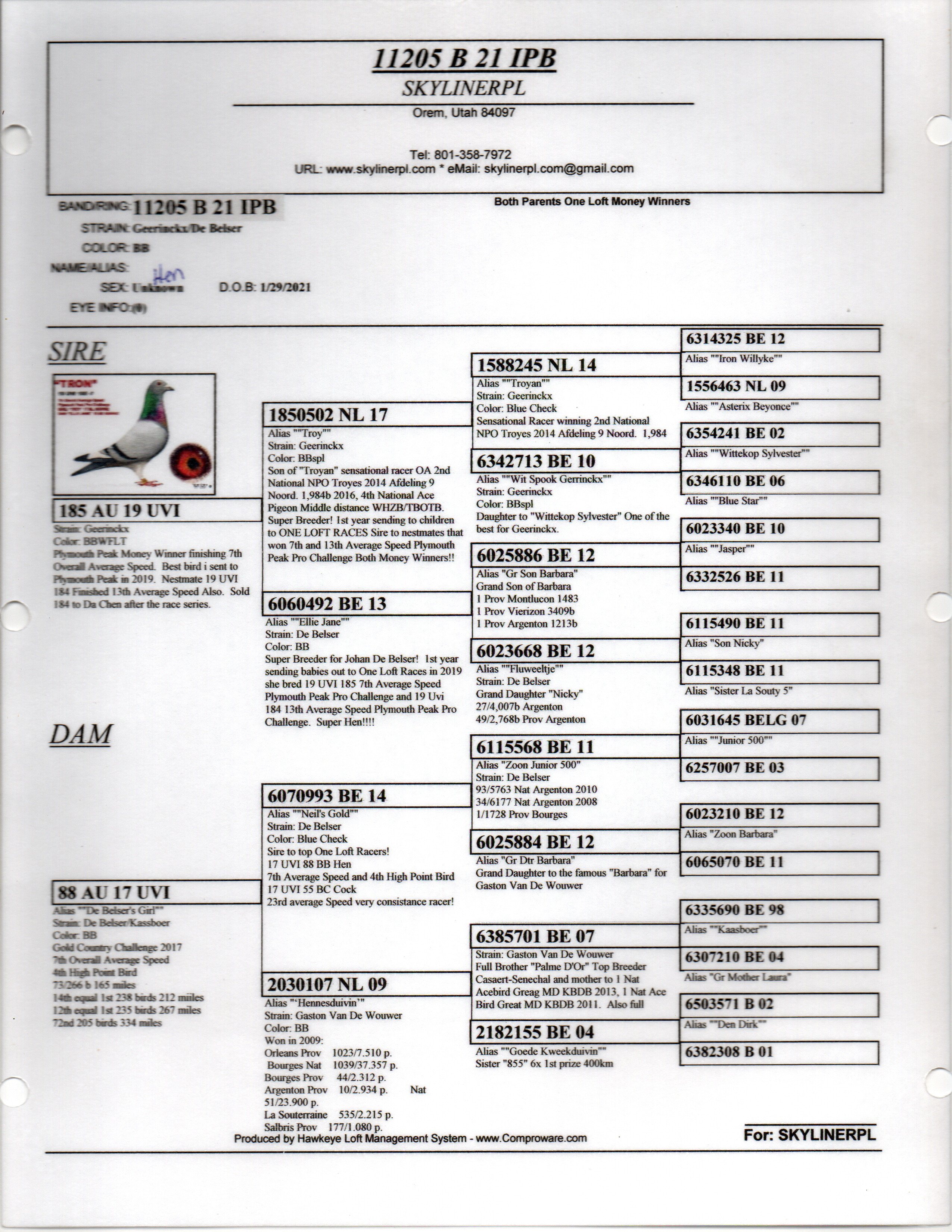 Beautiful BB hen . Troy, Ellie Jane Excellant hen check out the pedigree