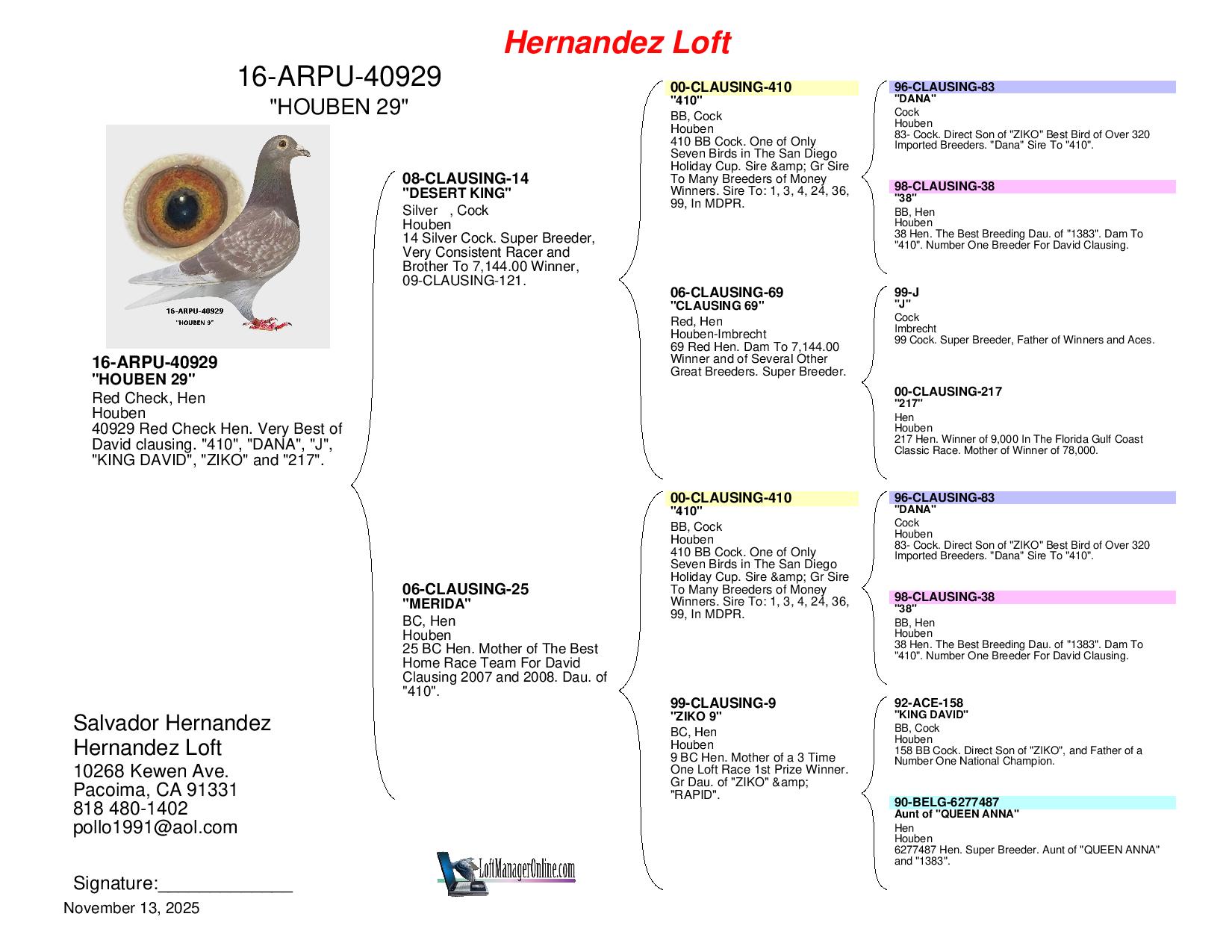 16-ARPU-40929 Red Check. Best of David Clausing Double "410", Plus "DANA", "J", "KING DAVID", "ZIKO" and "217".