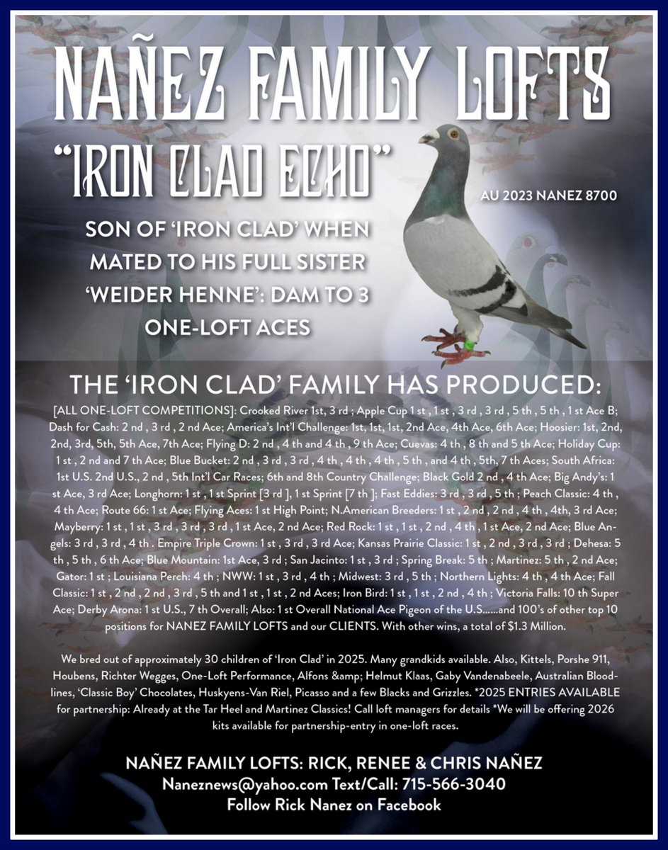 ***NANEZ FAMILY LOFTS AND SAAVEDRA FAMILY WINS: 2ND OVERALL ACE PIGEON MARTINEZ CLASSIC ONE LOFT SERIES!
