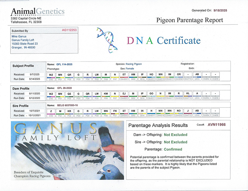 Ganus Family Loft-Mike Ganus GFL-114-2025 H