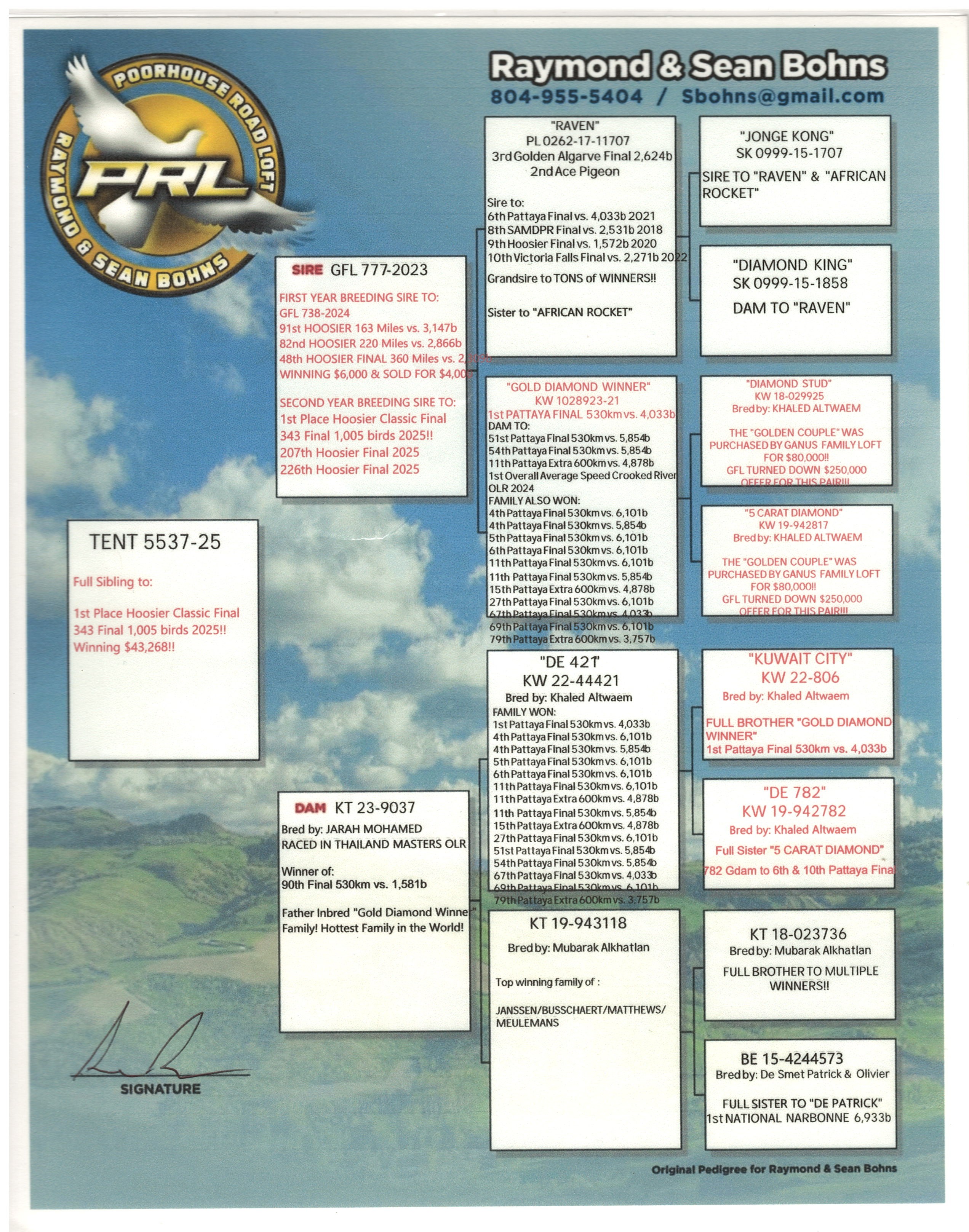 1st Place Hoosier Classic Final 343 Final 1,005 birds 2025!! Winning $43,268!!
