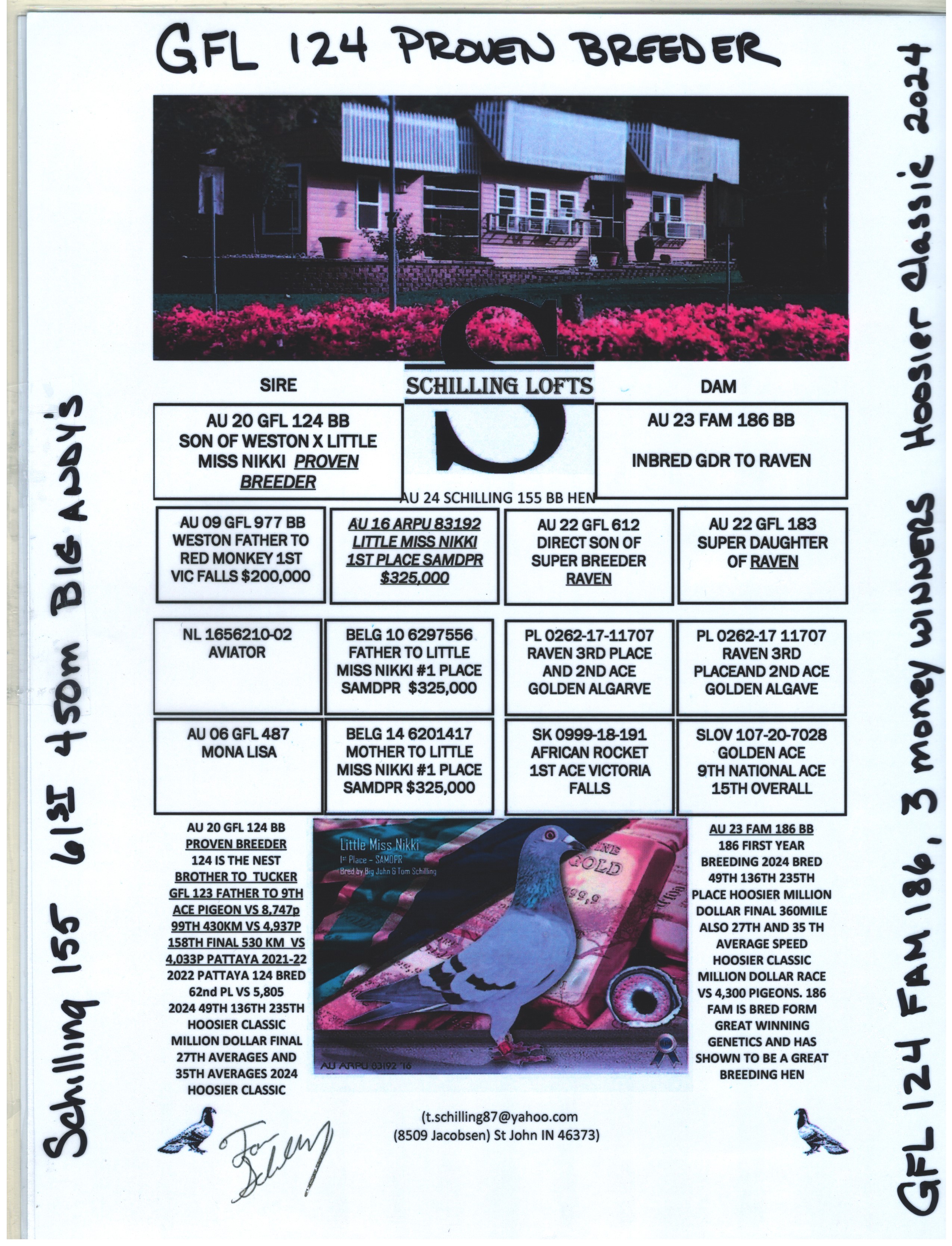 Father - GFL 124-20, "124" is father to money winners in the 2024 Hoosier Classic Million Dollar Race. Direct off Weston & Miss Nikki. Weston, father to Red Monkey, 1st Place Victoria Falls winning $200,000. Miss Nikki, 1st Place SAMDPR winning $325,000.