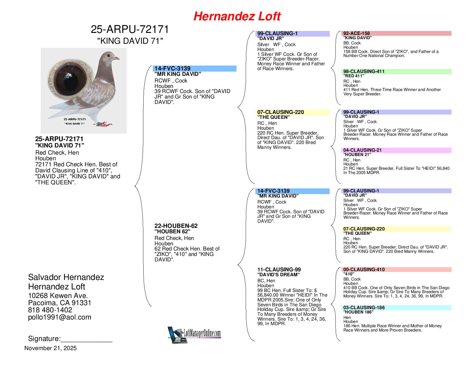 25-ARPU-72171 Red Check Hen. Best of David Clausing Line of "KING DAVID" And "DAVID JR".