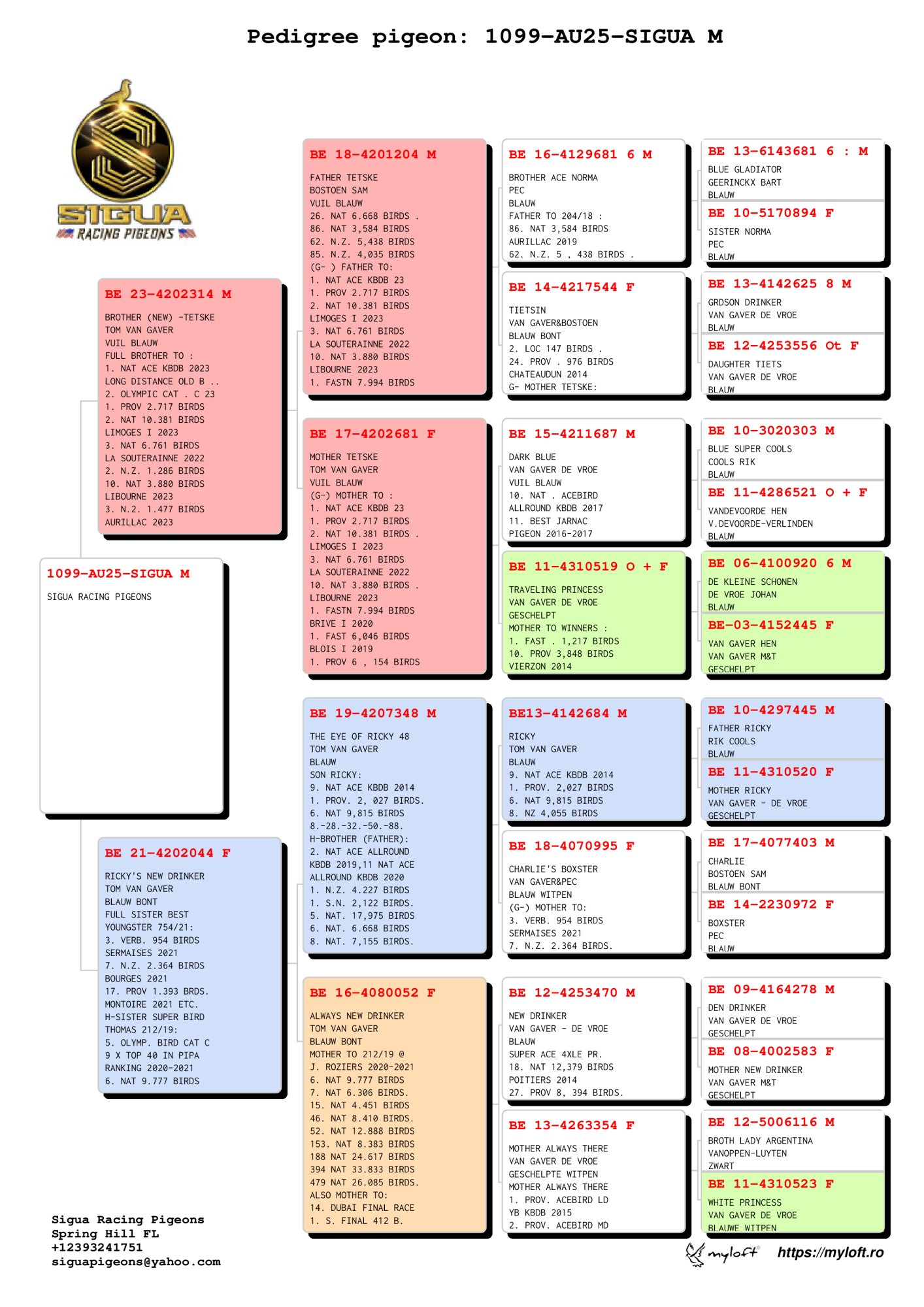 Sigua Racing Pigeons- Sigua-1099-2025 M