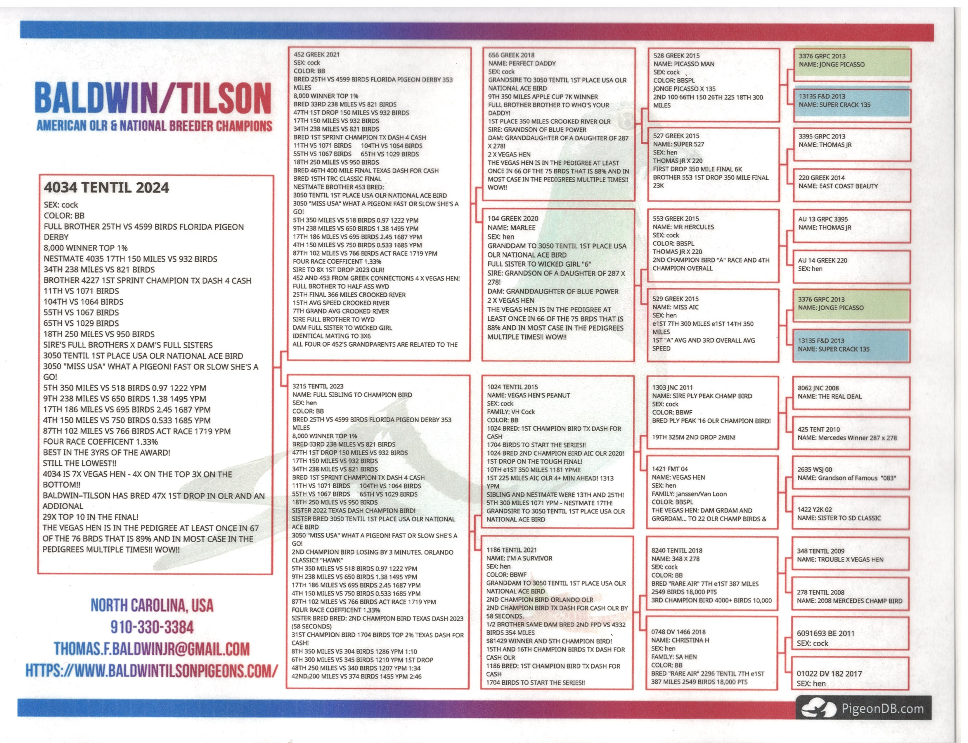 3X IN THE PEDIGREE OF THE 2024/25 FLORIDA PIGEON DERBY CHAMPION BIRD 8400 PLUS BIRDS!
