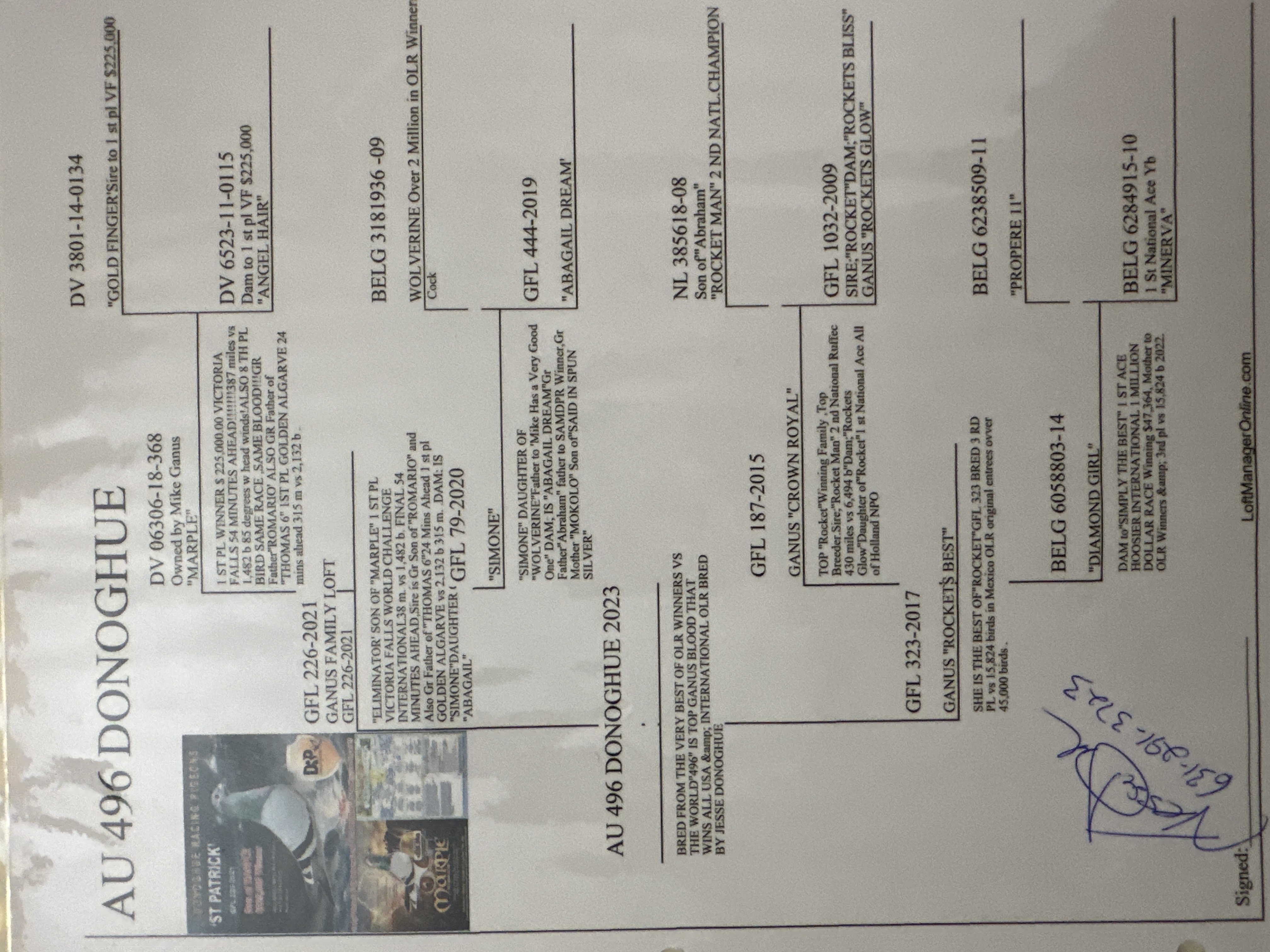 Nice Pedigree, pearl eyes, very nice handling pigeon , didn't get a chance to breed him . cutting breeders in 1/2 purchased to many birds