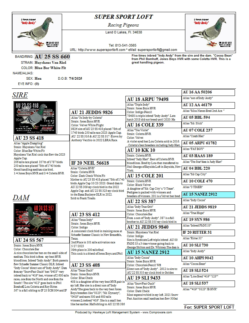 Five times inbred "Indy Andy" from the sire and the dam. "Cocoa Bean" from Phil Bomhoff, Jones Boys HVR with some Coletta HVR.