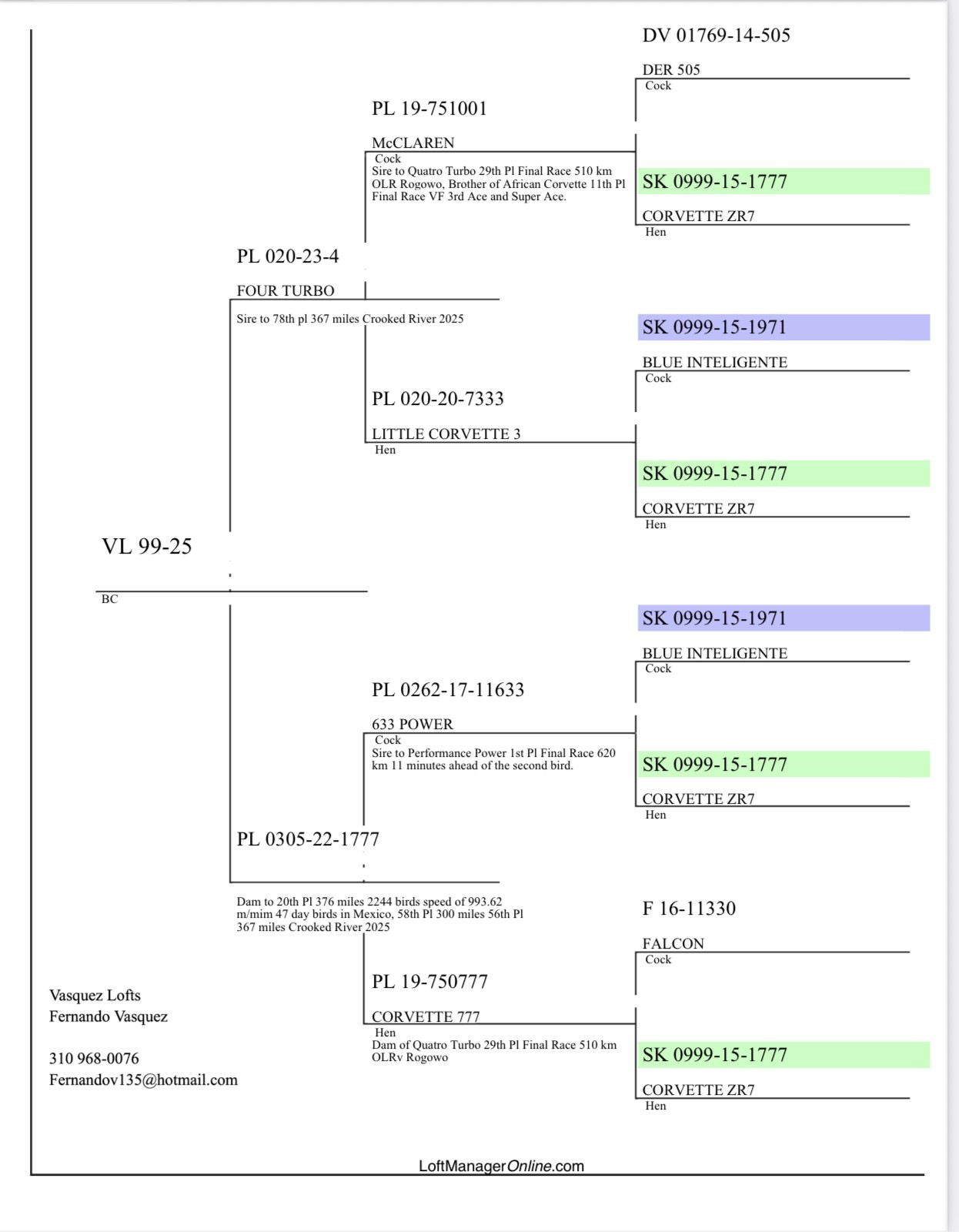 Very, very nice line bred Corvette bird. It looks like it's going to be a cock but sex is not guaranteed. Both parents have bred money winners. If you have any questions you can call or text me at 310-968-0076.