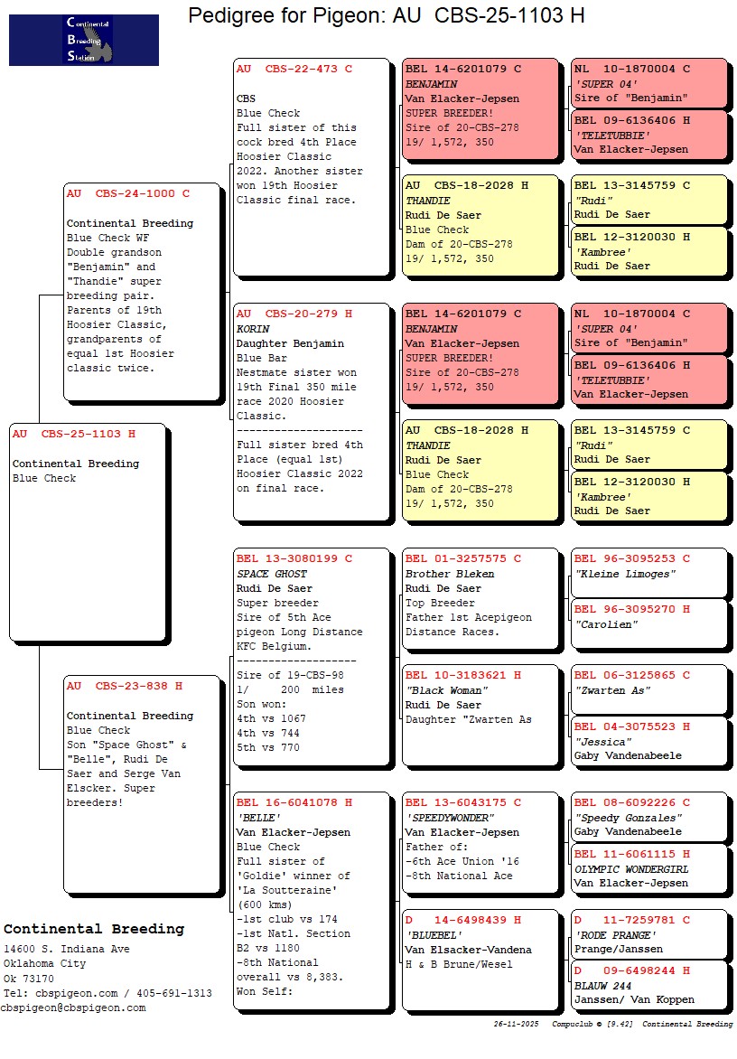 Dam: Son "Space Ghost" & "Belle", Rudi De Saer and Serge Van Elscker. Super breeders!