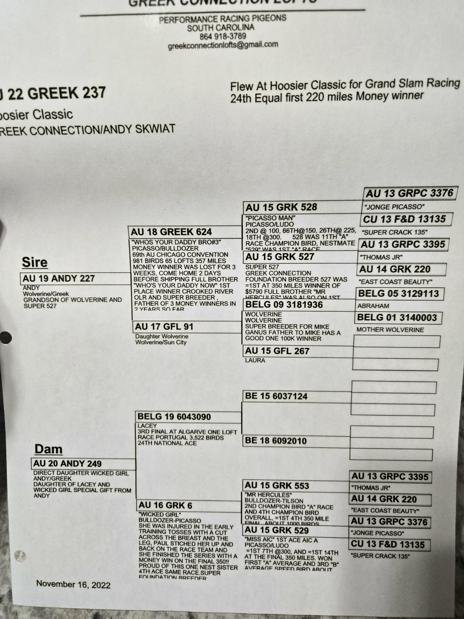 One will be off my foundation pair it bred the 6th place money winner when I was the only northern loft to fly the race by 15 miles. Norbert Norman line x Cassart