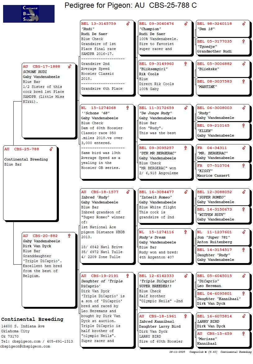 Dam: Granddaughter 'Triple DiCaprio'. Excellent hen bred from the best of Belgium.