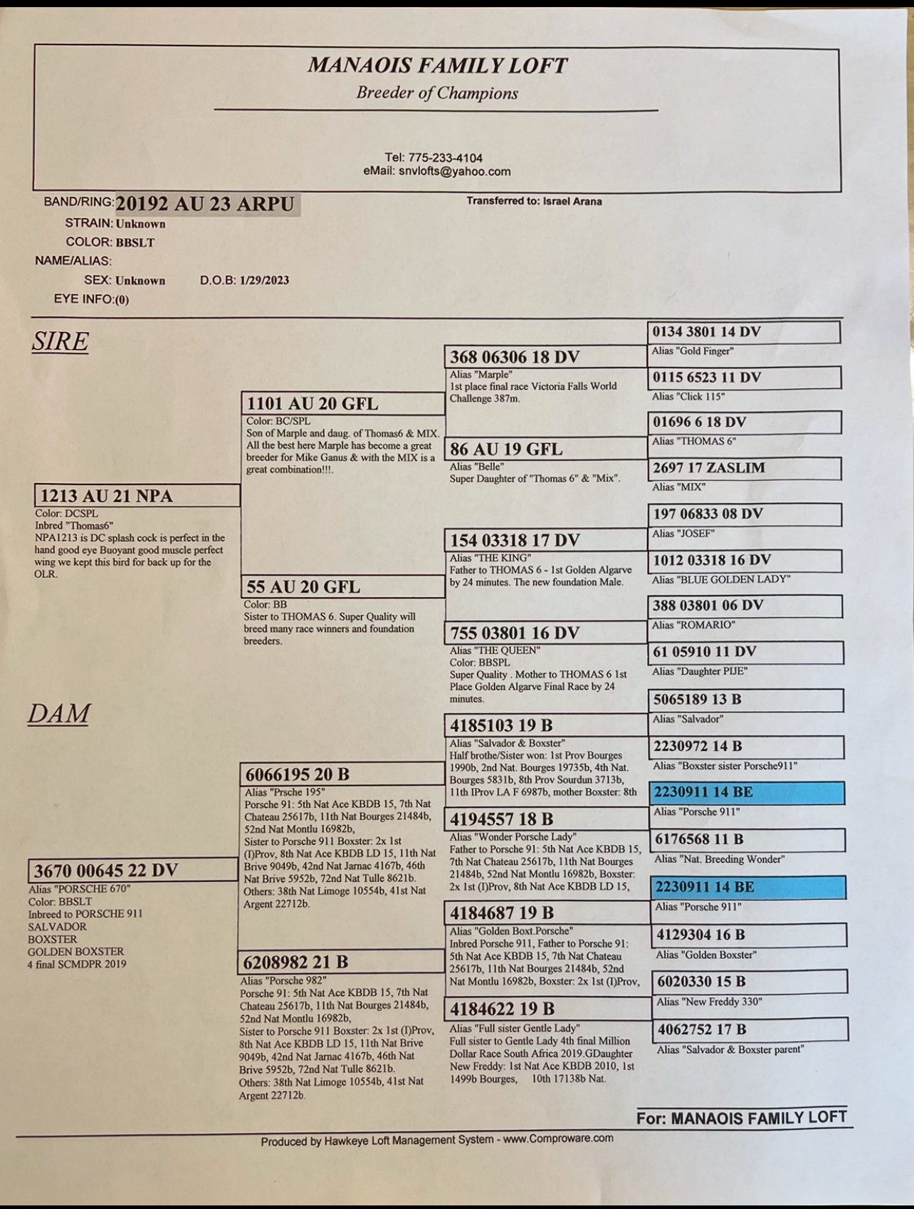 2025 inbred Porsche / Thomas 6 comes with pedigree
