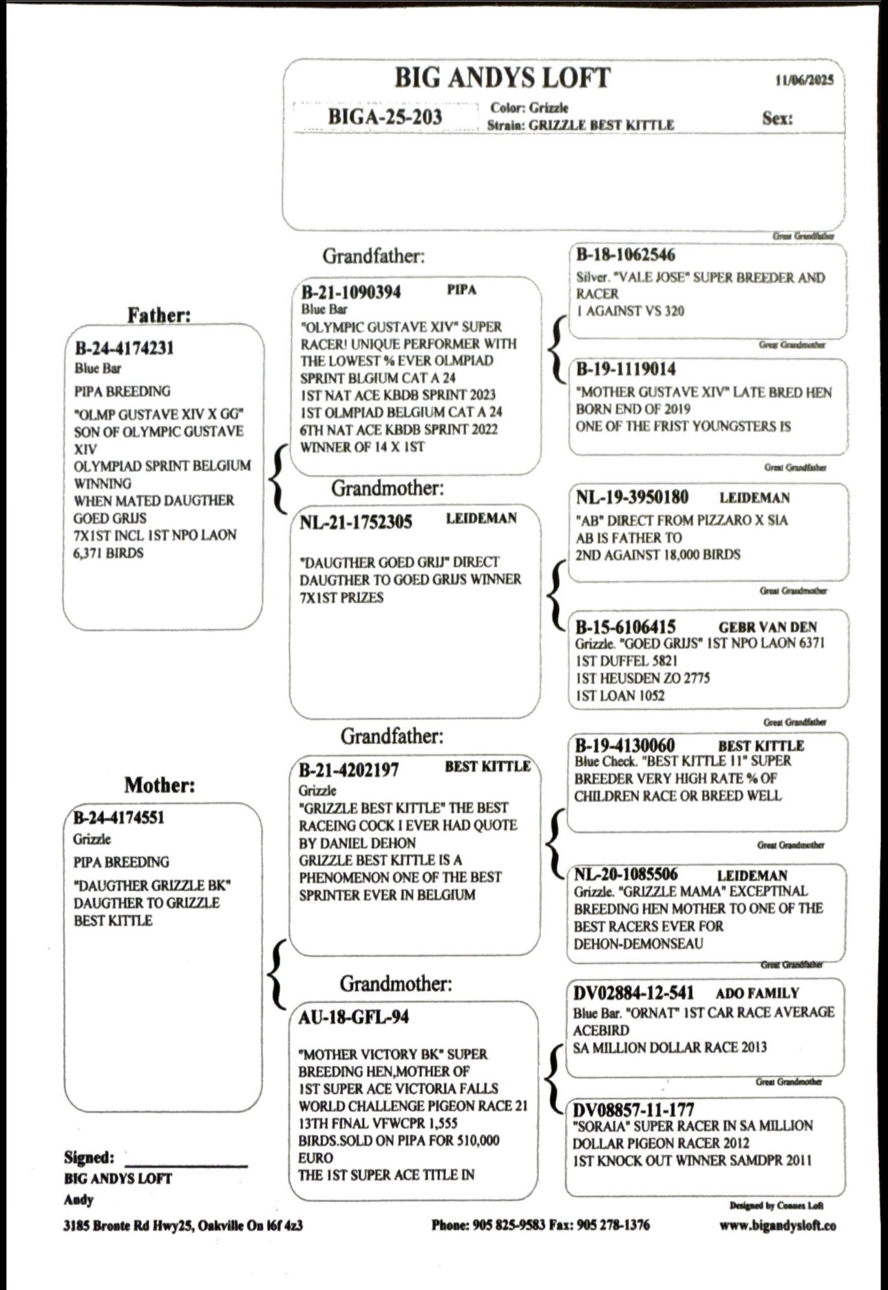 14x 1. prize avg. +1,000 birds breeder of top youngsters in 2024