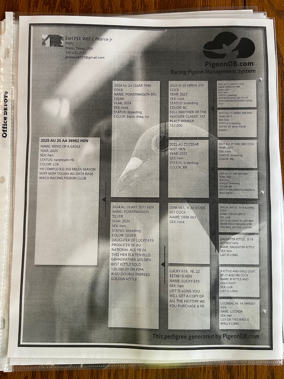 Yb season 350 miles hard tough winds cross head also trained125 x single toss three bird toss basket one at a time . Also this blood I fly in olr