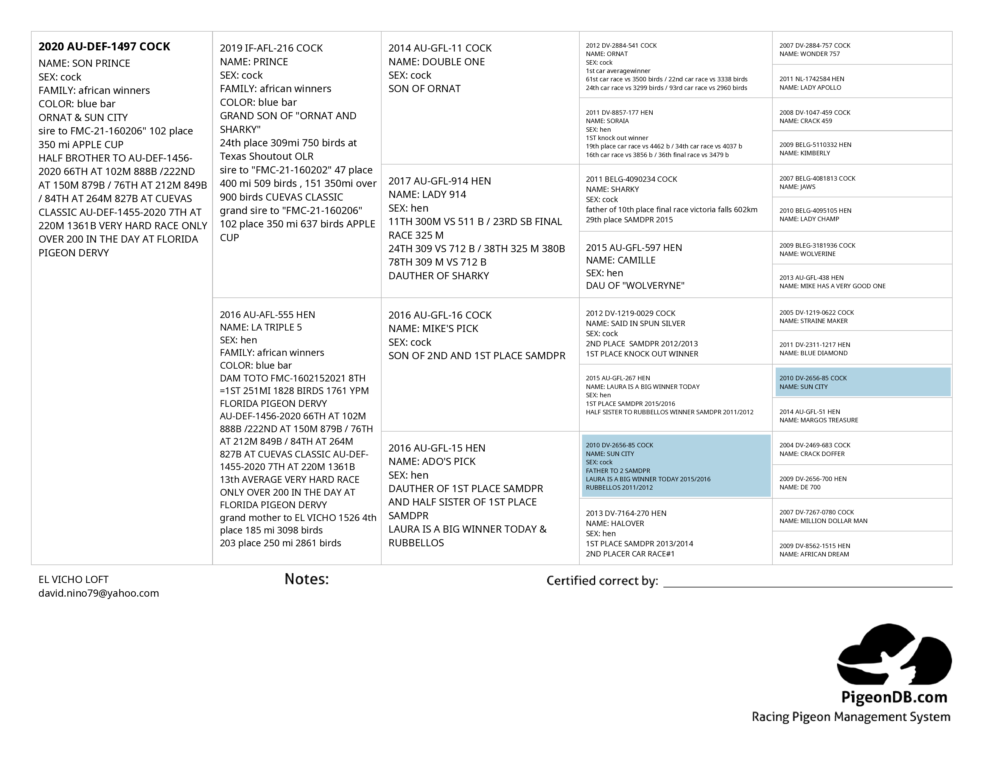 Official Pedigree Document