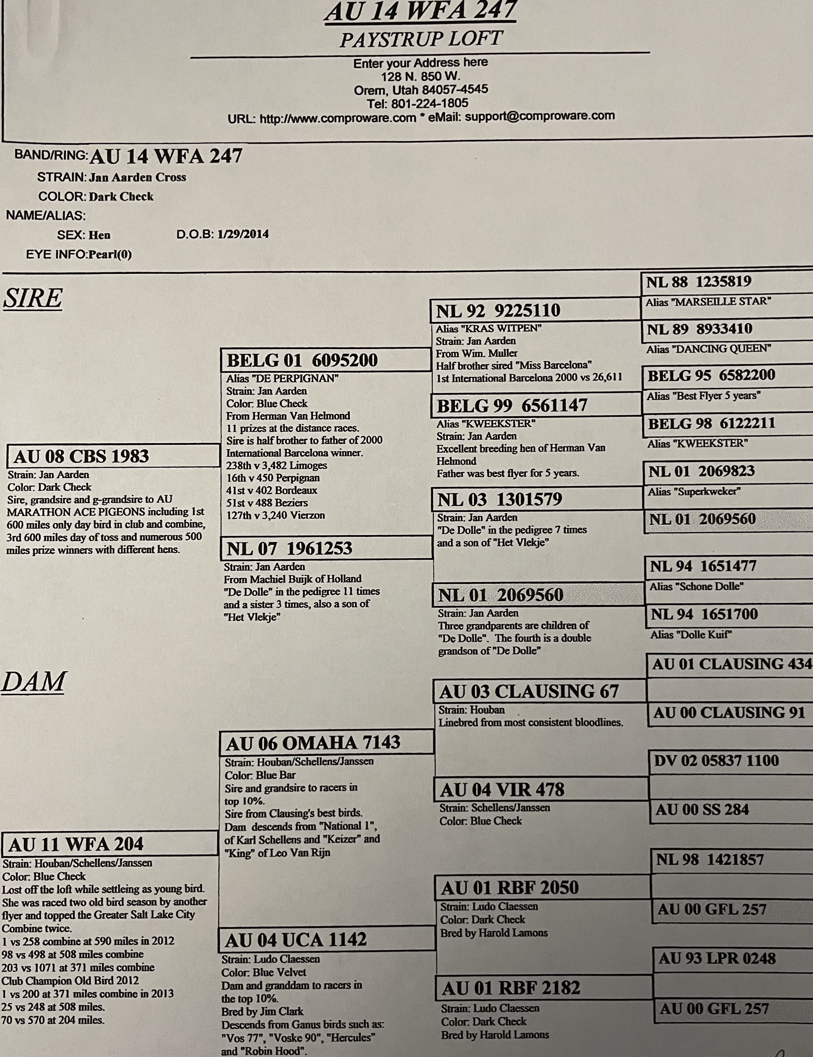 Dam mother won 1st vs 258 combine at 590m in 2012 and 1st vs 200 at 371m combine in 2013.