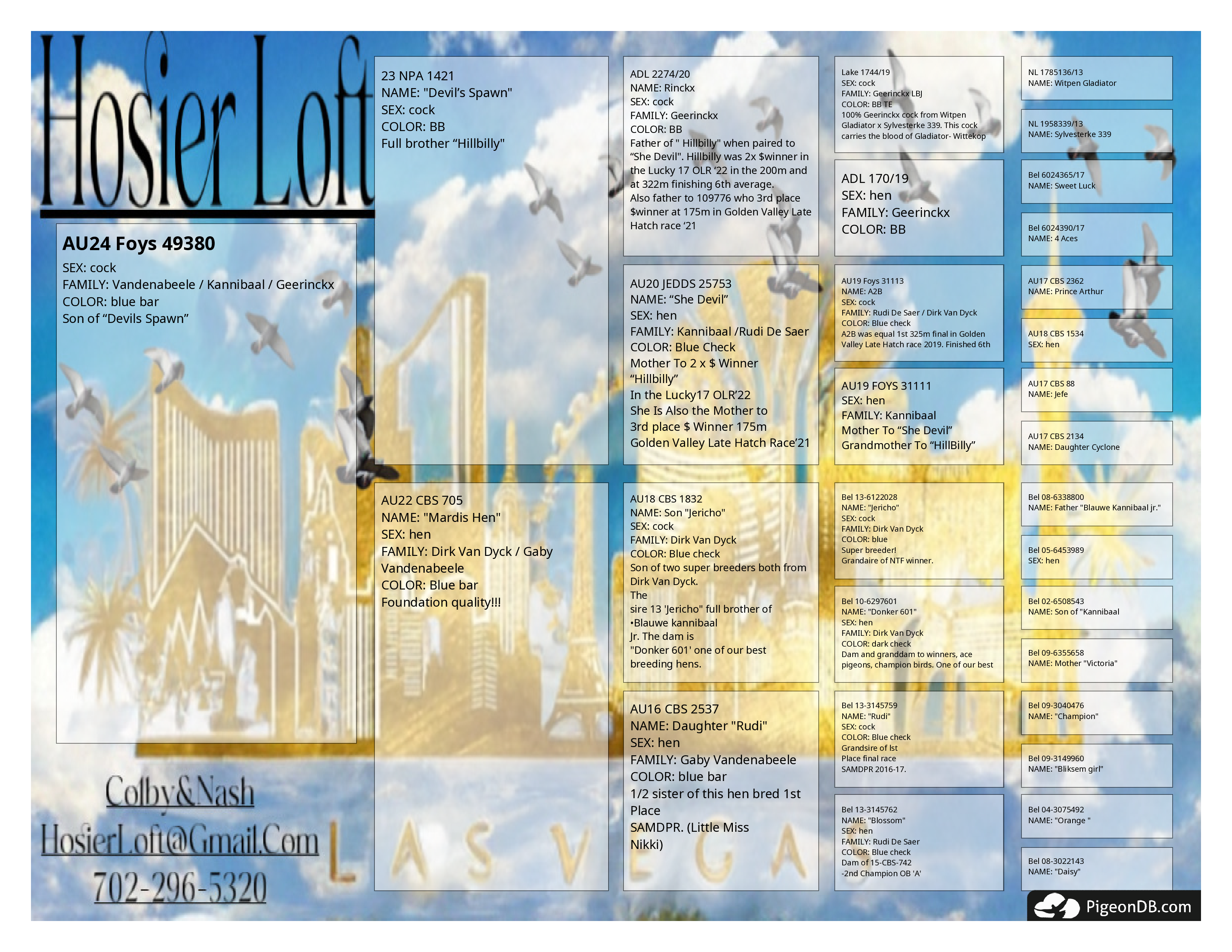 Young cock that was never flown and lightly bred this last season. All 3 youngsters currently flying club. 2 full siblings to this cock in Florida pigeon derby. See pedigree for more details.