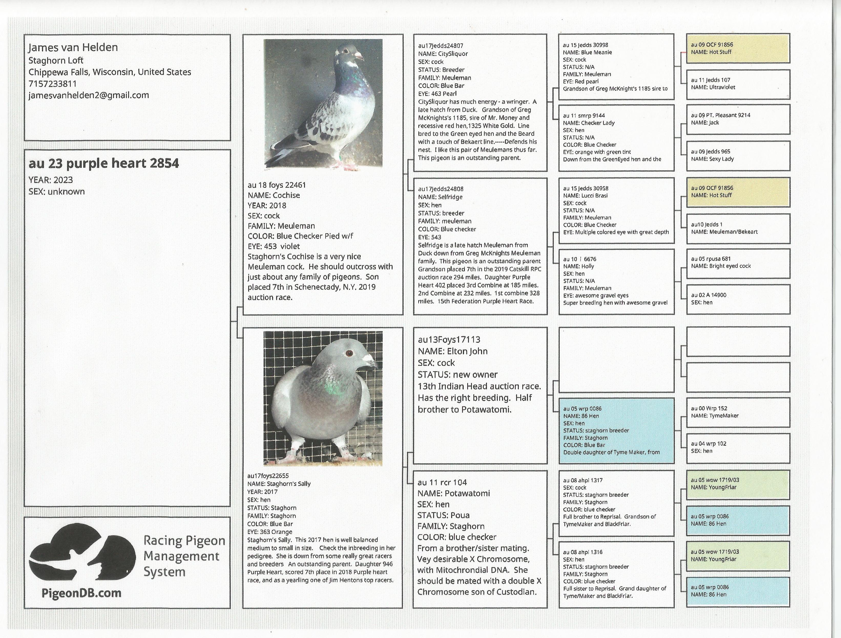 AU-23-PURPLEHEART-2854 BB cock. Check out pedigree for more information.