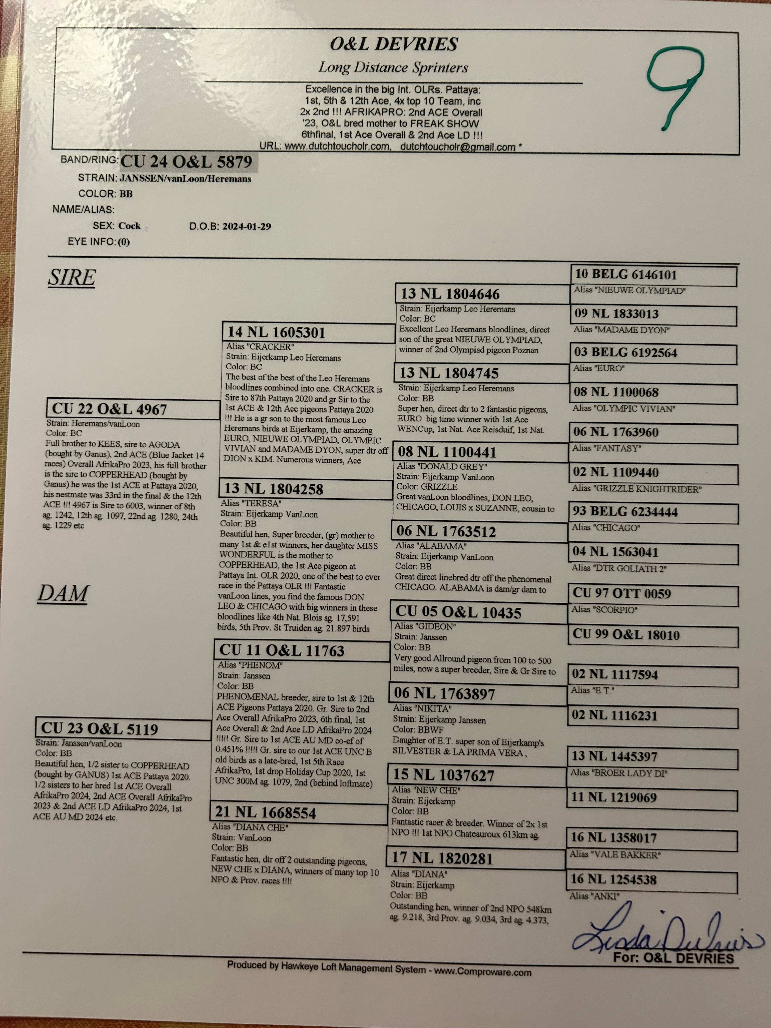 Lot 9 – CU 24 O&L 5879 BB Cock