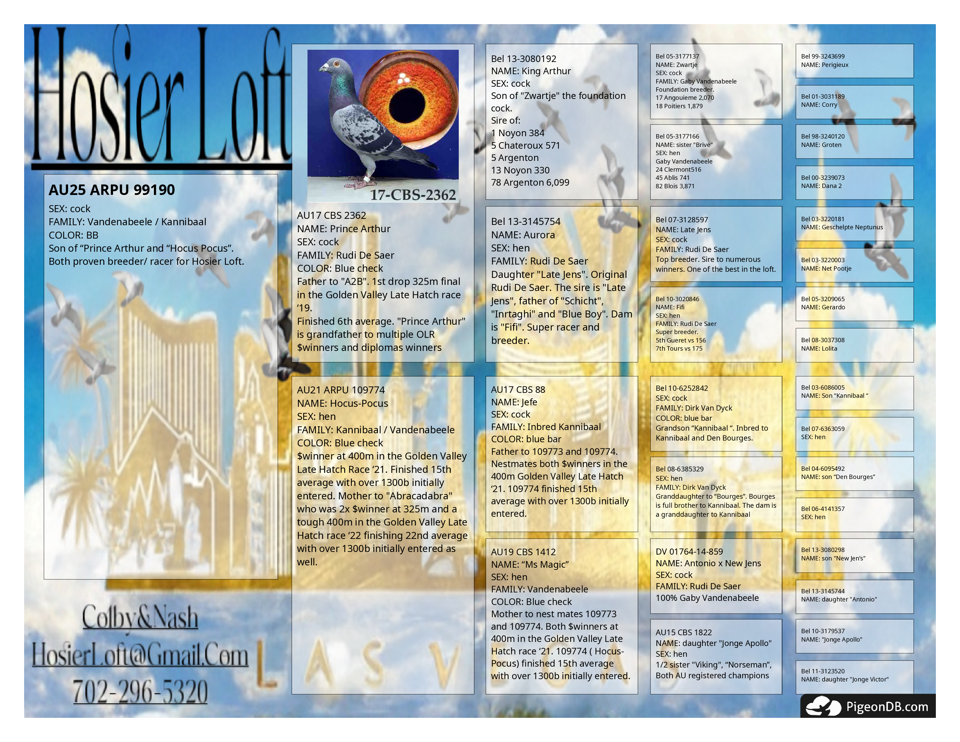 Very nice young cock down from two of our best breeders / racers. Check pedigree for more info.