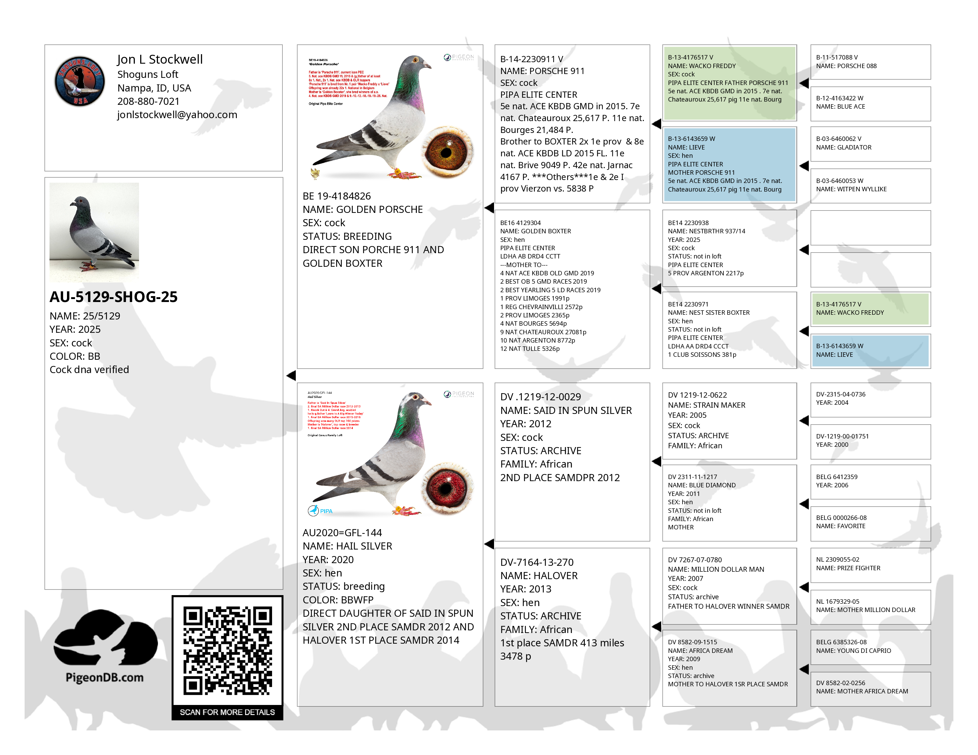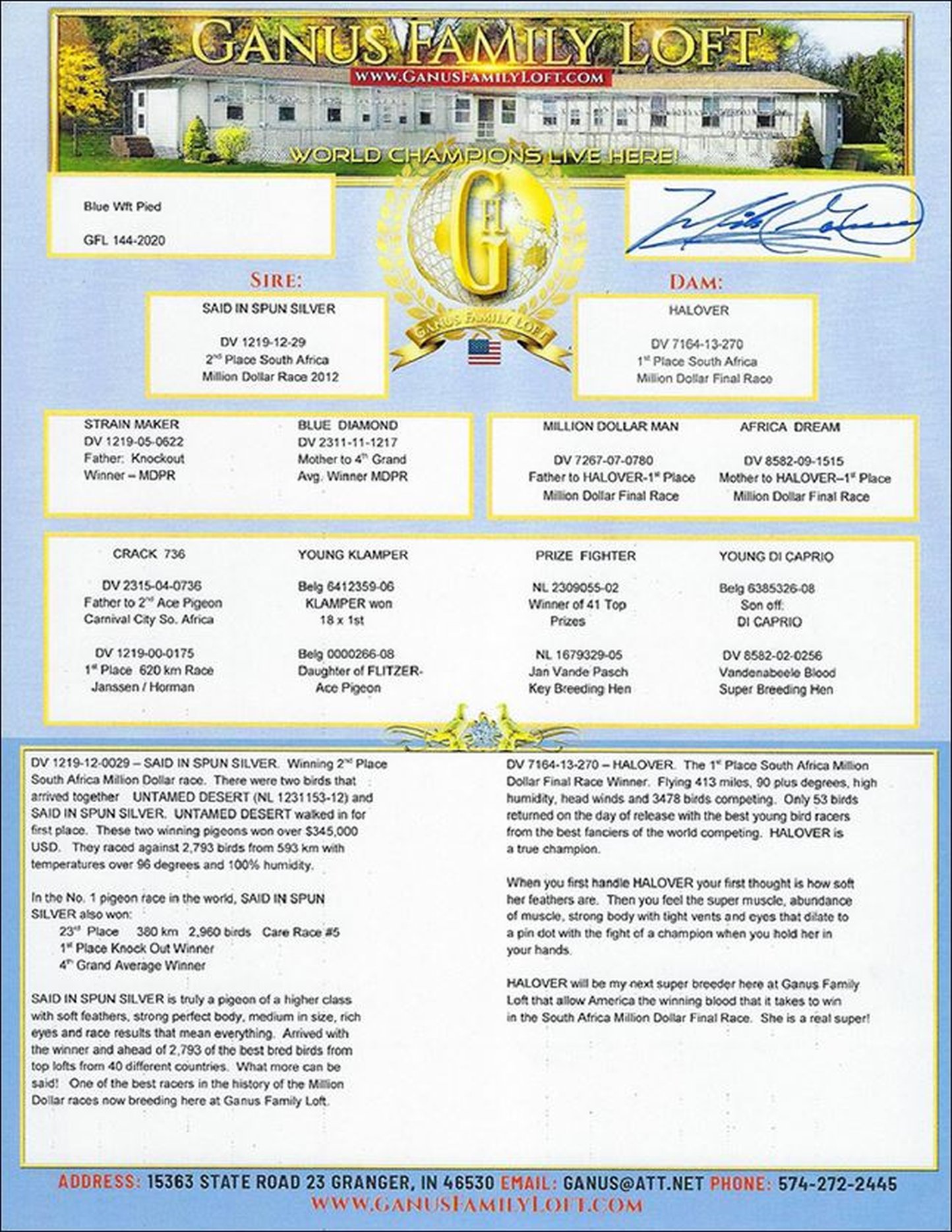 This bird has winning bloodlines all around. I have added some very exclusive breeding to the loft.