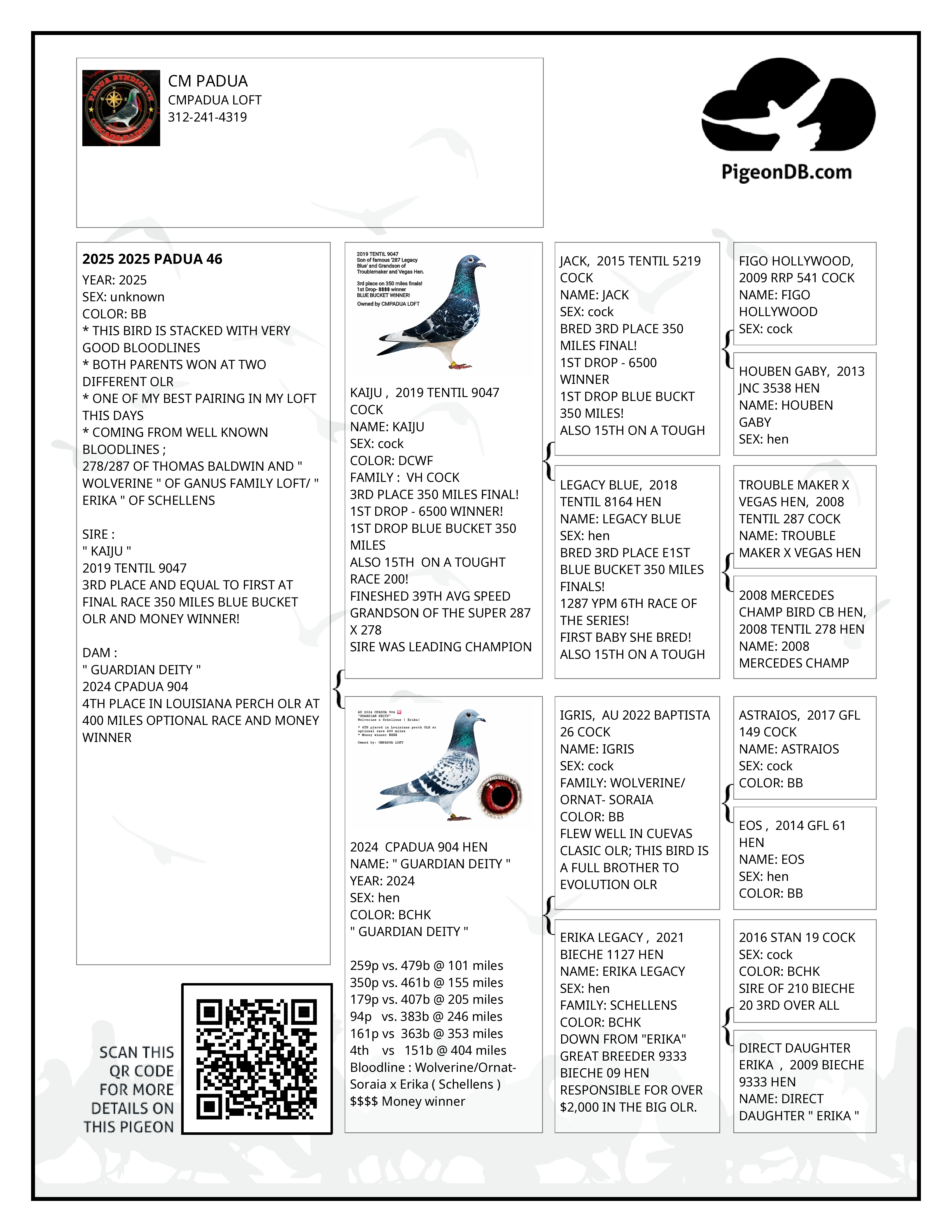 * THIS BIRD IS STACKED WITH VERY GOOD BLOODLINES