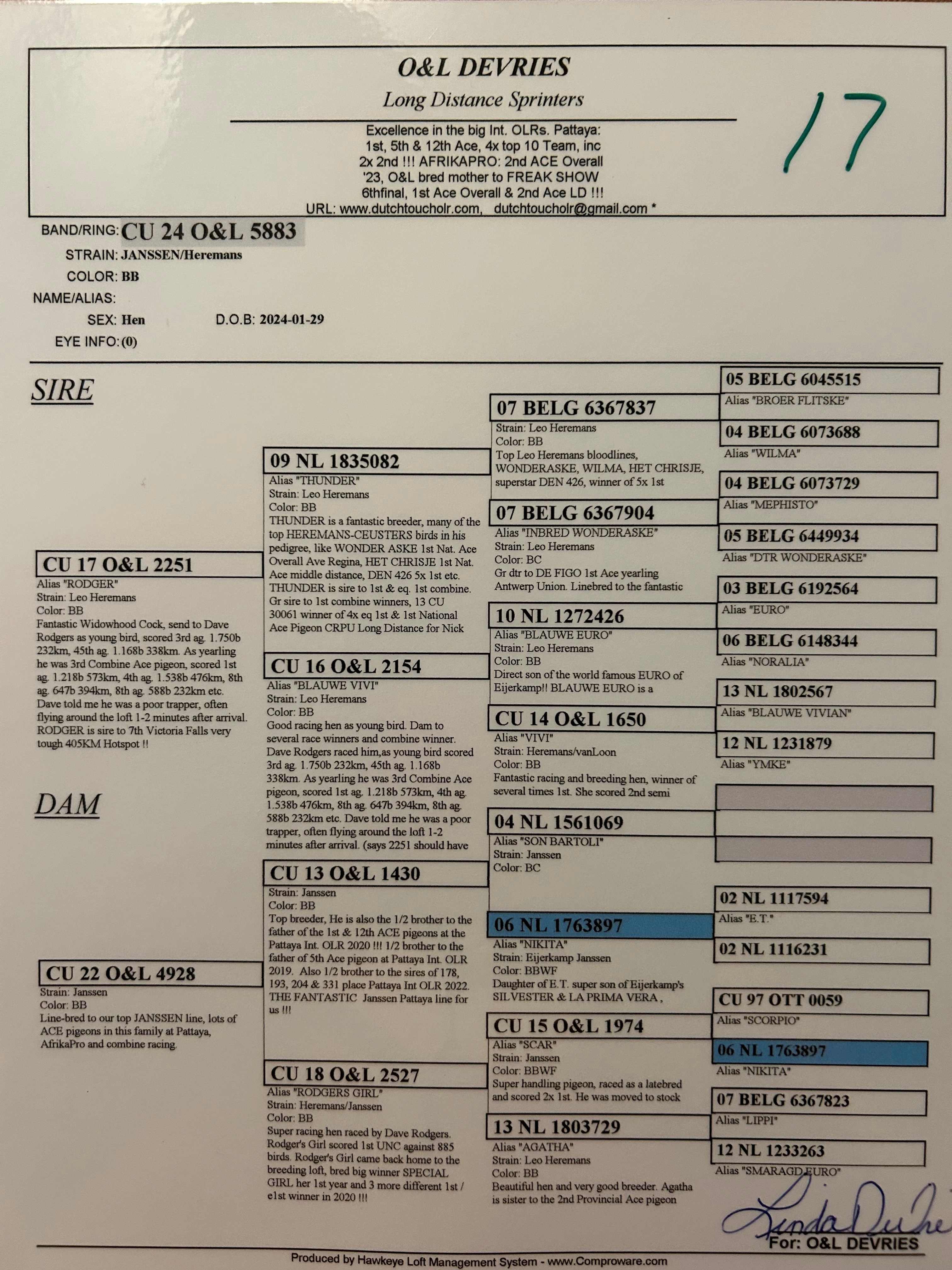 Lot 17 – CU 24 O&L 5883 BB Hen