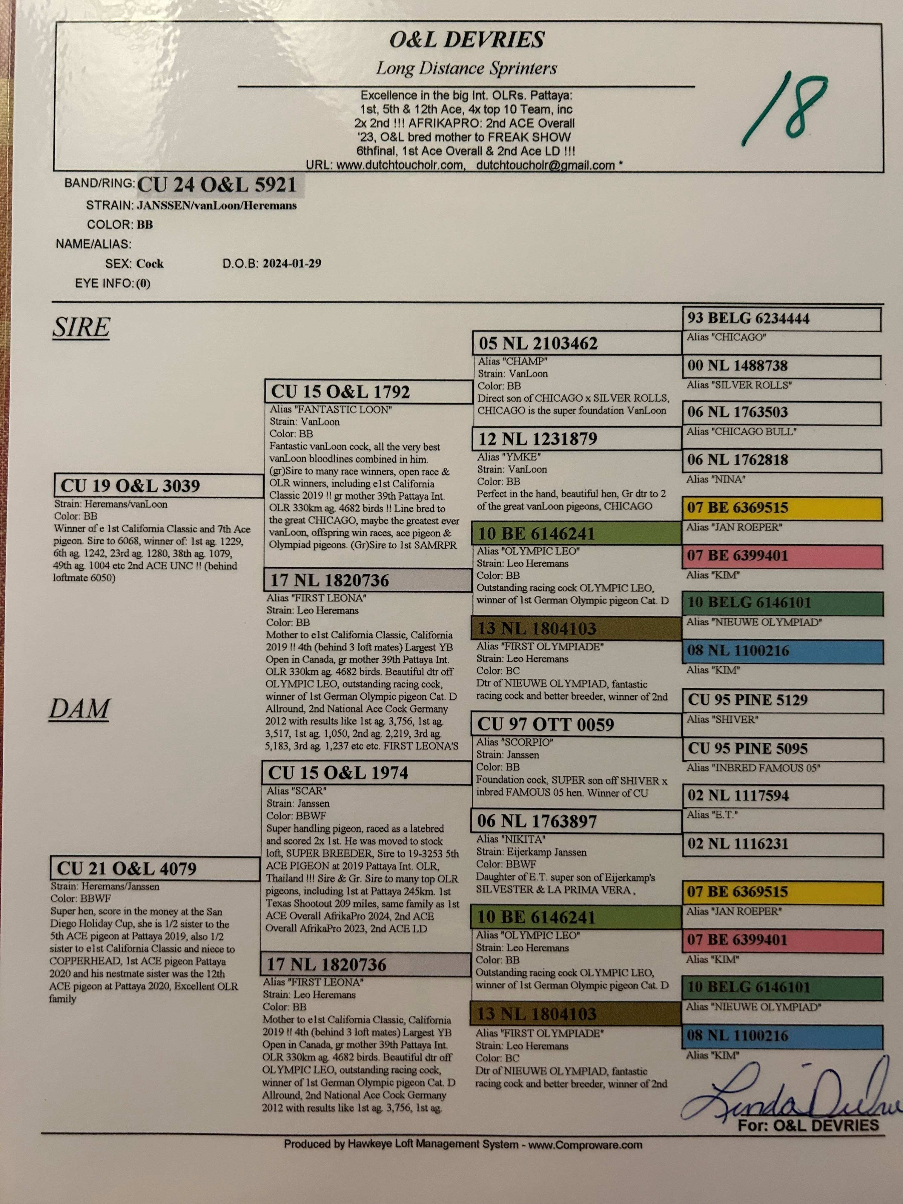 Lot 18 – CU 24 O&L 5921 BB Cock