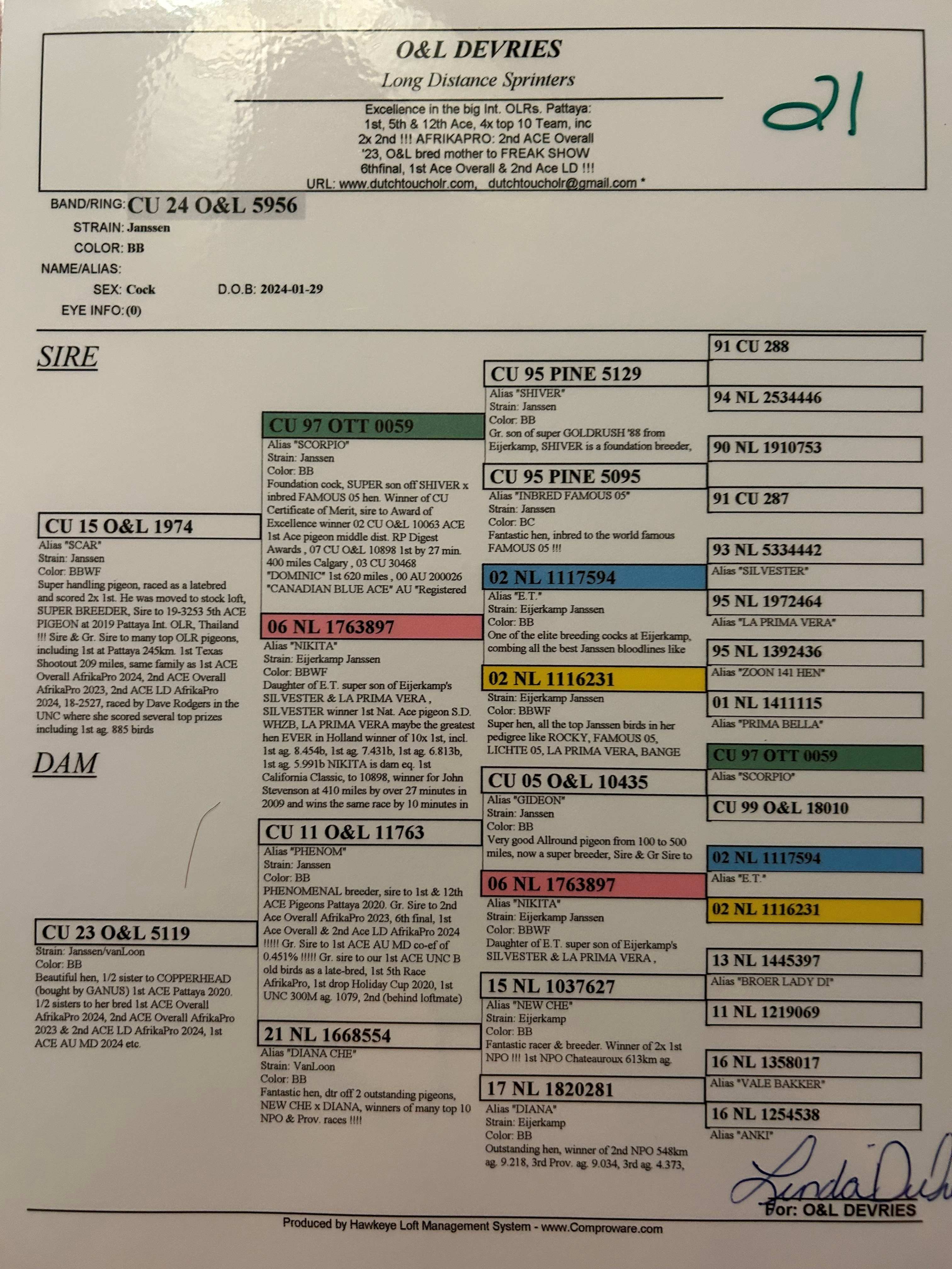 Lot 21 – CU 24 O&L 5956 BB Cock