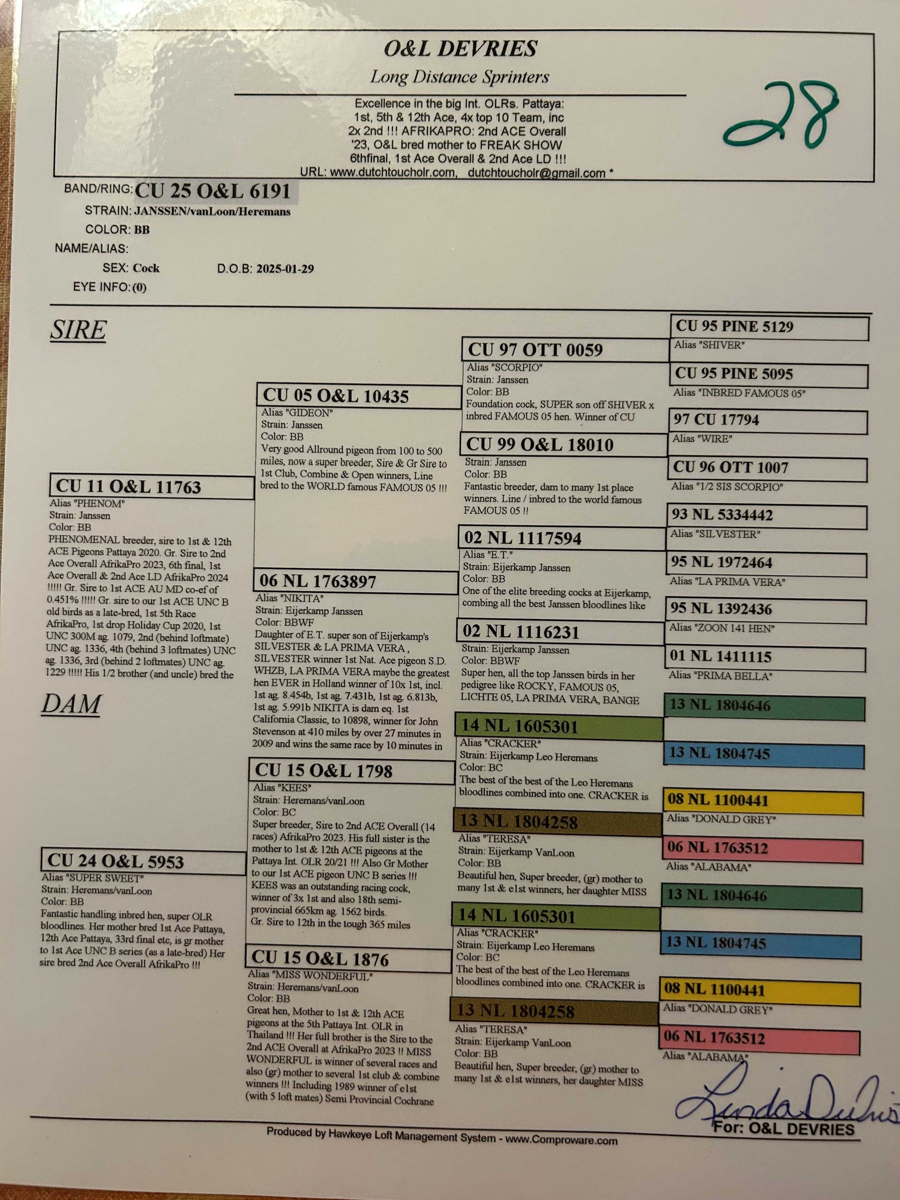 Lot 28 – CU 25 O&L 6191 BB Cock